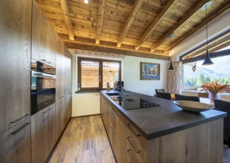 Im Chalet Reichenbergerspitze stehen Luxus und Komfort an erster Stelle. Und die herrliche freie Aussicht, die man von dort über das wunderschöne Tal mit den atemberaubenden Berggipfeln hat, ist ein Genuss mit einem großen G! Und dann noch die sonnige, nach Süden ausgerichtete große Terrasse, was will man mehr?! Dieses schöne Chalet befindet sich am Rande des Waldes, in unmittelbarer Nähe vom Eingang zum Wald und ein beruhigender natürlicher Bach fließt dem Haus entlang. Entdecken Sie die Natur! Nationalpark Chalet Reichenbergerspitze zu den Nationalpark Chalets im malerischen Dorf Neukirchen am Großvenediger und ist für 6 Personen mit drei sehr komfortablen Schlafzimmern eingerichtet. Alle Schlafzimmer haben ein herrliches Doppelbett und ein Schlafzimmer hat sogar ein Badezimmer en-suite, was für ein Luxus! Selbstverständlich gibt es auch noch ein zweites luxuriöses Badezimmer im Chalet. Die Wohnetage besteht aus einer geräumigen Küche mit Kochinsel und einem großen Esstisch, an dem Sie köstliche Mahlzeiten genießen und gemütliche Spieleabende erleben können. Außerdem gibt es viele Möglichkeiten, sich nach einem erlebnisreichen Tag zu entspannen. Lassen Sie sich auf der gemütlichen Couch am offenen Kamin nieder oder gehen Sie in die finnische Sauna mit großem Panoramafenster. Das ist Genuss pur!