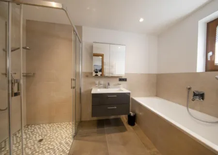 You can park under the carport where there is room for two cars. Enter the chalet from the carport to access the ground floor where you will find the storage room and a bedroom with a double bed and private bathroom with a bath. The middle floor has another three comfortably furnished bedrooms, each with a double bed and an en-suite bathroom, what luxury! On the top floor is the living area of Chalet Bachmayrspitze where you can dine comfortably at the beautiful dining table and enjoy a home-made meal in the fully equipped kitchen with cooking island. Sit down in the lovely sitting area, light the fireplace and enjoy the magnificent view of the mountains and the valley. Did you know that all houses in National Park Chalets are named after a mountain peak in the National Park Hohe Tauern?!