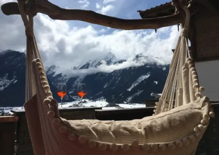 Chalet Kristallwand biedt plaats aan zes personen en is ingericht met een mix van materialen zoals hout, steen, bont gecombineerd met gedurfde Bretz Design bankklassiekers en handgeschilderde kunstwerken. Dit creëert een heel eigen sfeer. In de ruime woonkamer met een prachtige dakspant wacht een gezellige zithoek, een open haard, Apple TV en een surround-muzieksysteem op je. Vanuit de woonkamer stap je zo op het balkon en het terras met infraroodstralers. De volledig uitgeruste keuken met aangrenzende eethoek is een paradijs voor hobbykoks en biedt voldoende ruimte voor culinaire uitdagingen met een prachtig uitzicht op de bergen. Begin je dag met een kopje koffie en de eerste zonnestralen op het oostelijke balkon. Het chalet beschikt over drie slaapkamers, twee badkamers en een extra toilet. Twee slaapkamers hebben comfortabele tweepersoonsbedden, terwijl de derde slaapkamer een stapelbed (1,80 m) en speelruimte voor kinderen biedt. In de slaapkamers worden kleurrijke fluwelen bedden gecombineerd met rustieke oude houten muren en antieke boerenmeubelkasten. Alle slaapkamers bieden een adembenemend uitzicht op de bergen, direct vanuit je bed.